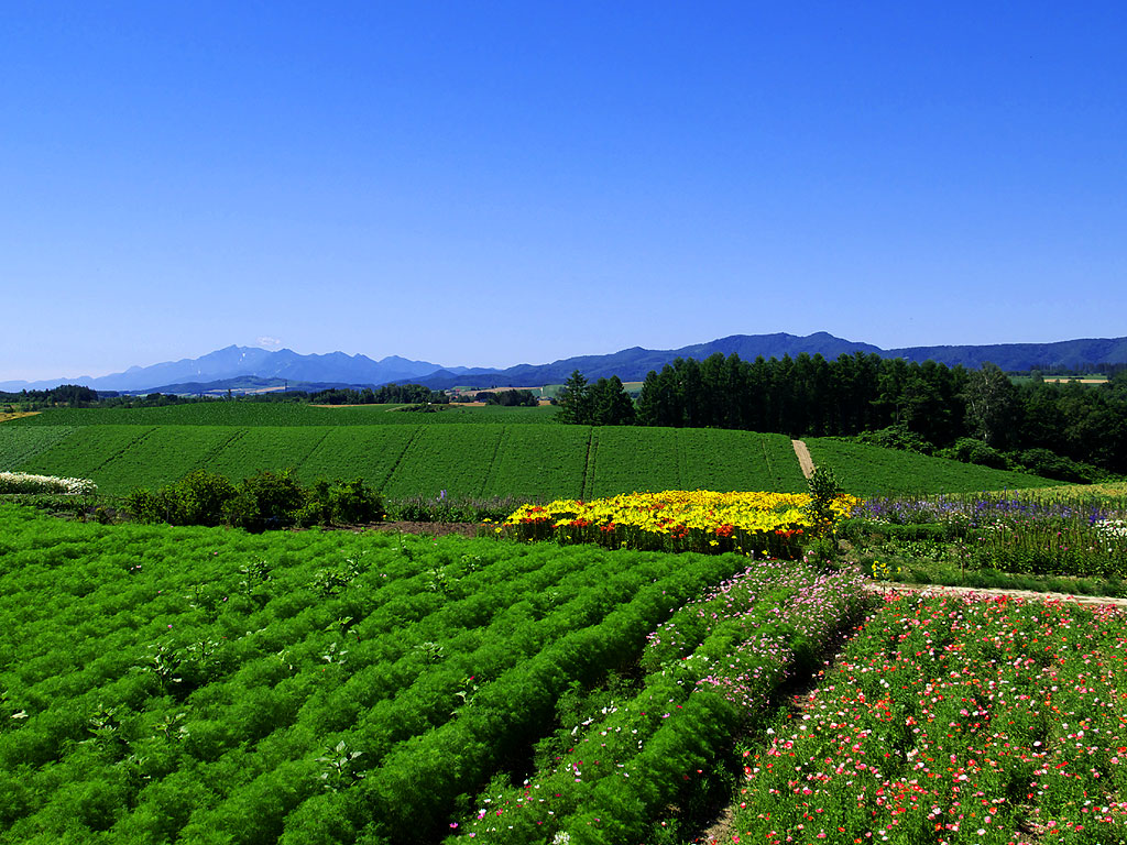 美瑛パノラマロードの壁紙写真 12 新栄の丘展望公園からの眺め(1024×768)