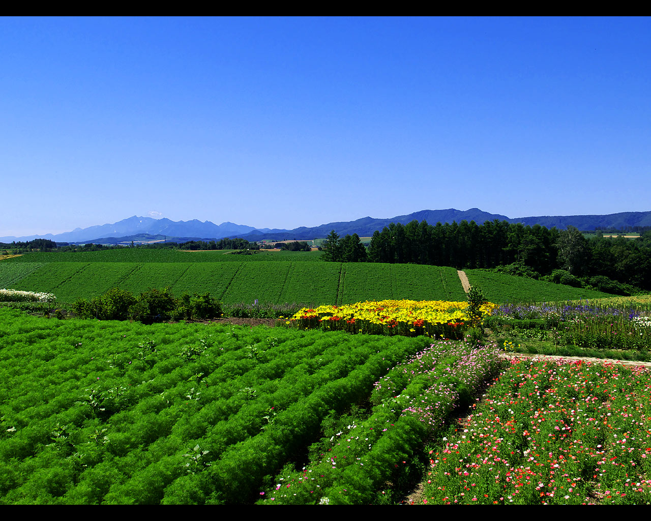 美瑛パノラマロードの壁紙写真 12 新栄の丘展望公園からの眺め(1280×1024)