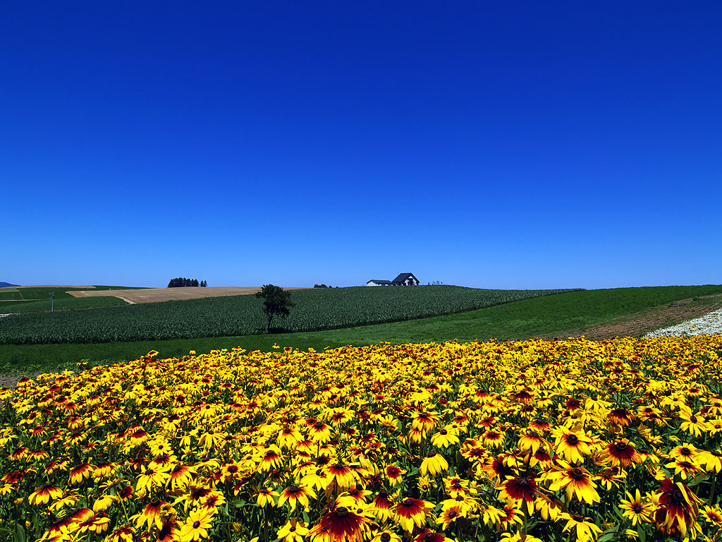 美瑛パノラマロードの壁紙写真 9 新栄の丘展望公園からの眺め(1024×768)