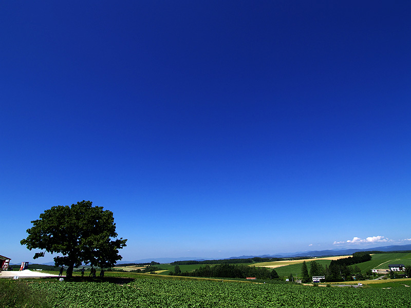 美瑛パッチワークの路 セブンスターの木と美瑛遠景 33(800×600)