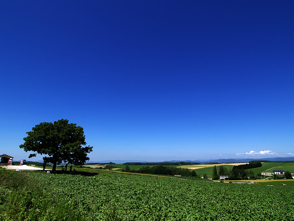 美瑛パッチワークの路 セブンスターの木と美瑛遠景 34(1024×768)