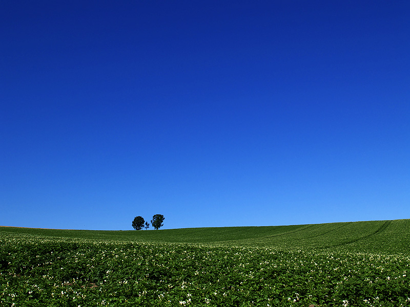 ジャガイモ畑と親子の木の風景です.