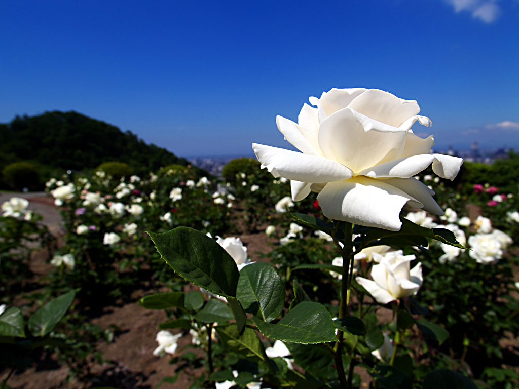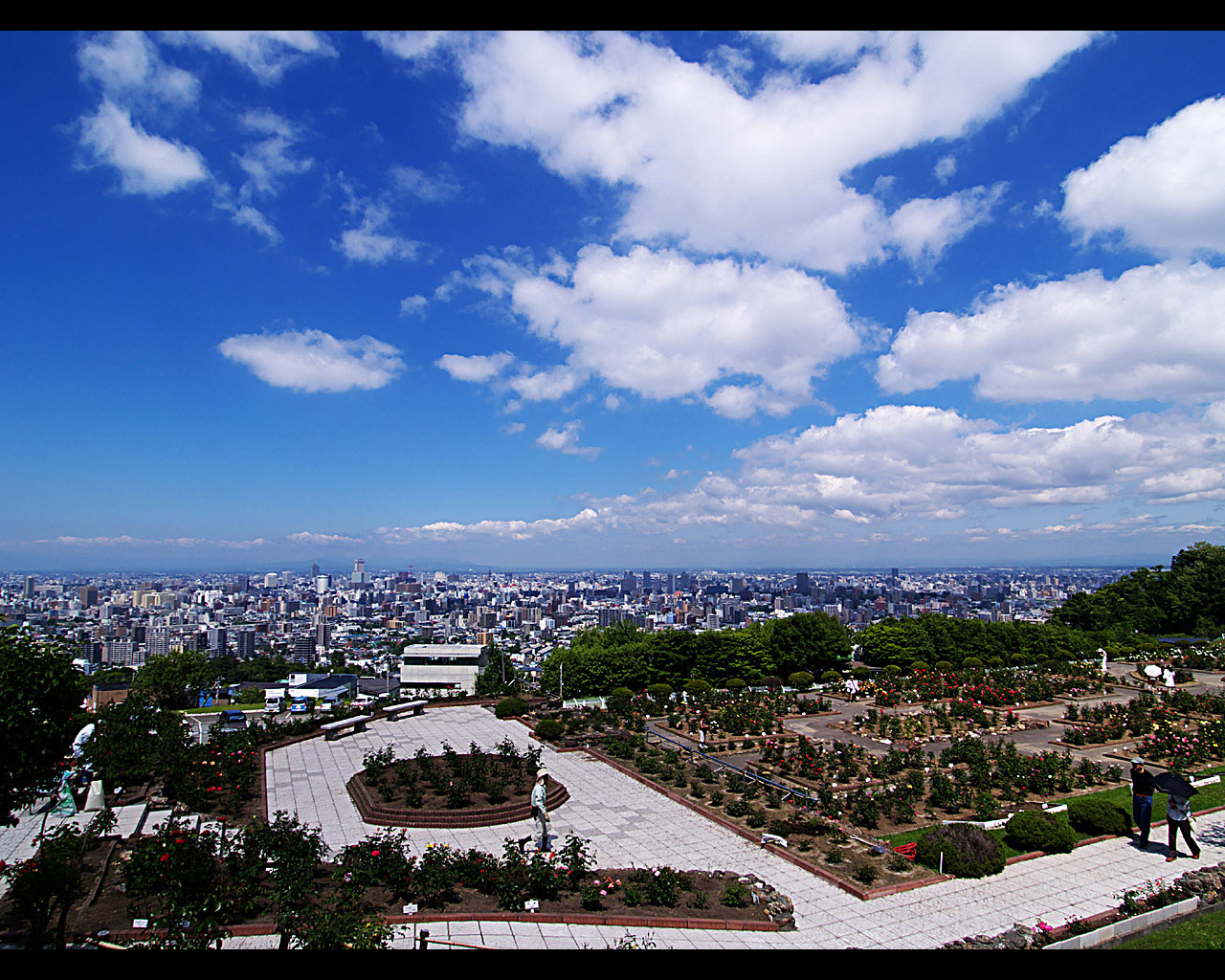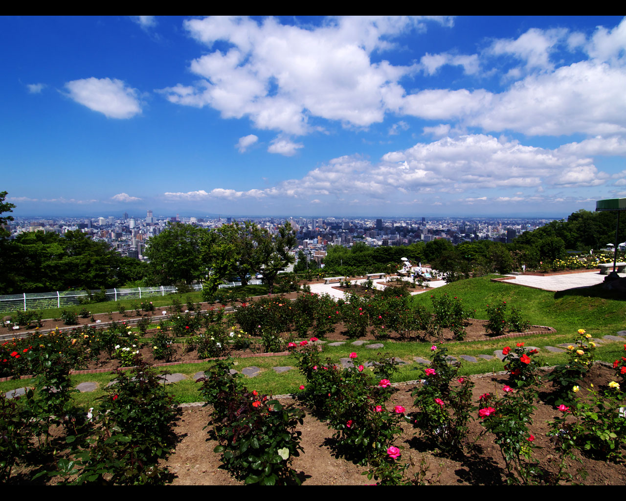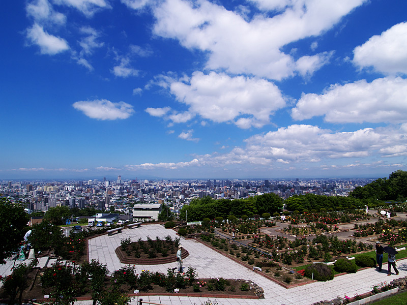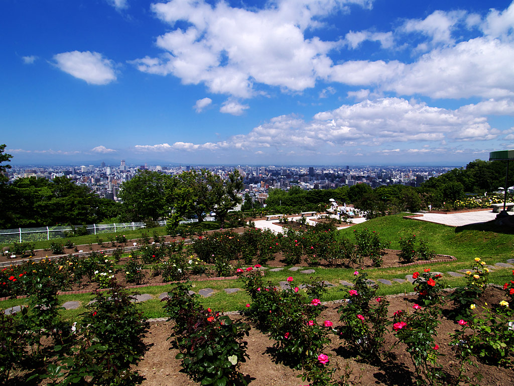藻岩山の中腹にあるバラの名所,ちざきバラ園.4000種のバラの花を見ることができると共に,バラ園からは札幌市街地の風景を眺めることもできます.バラのソフトクリームもお勧めです.