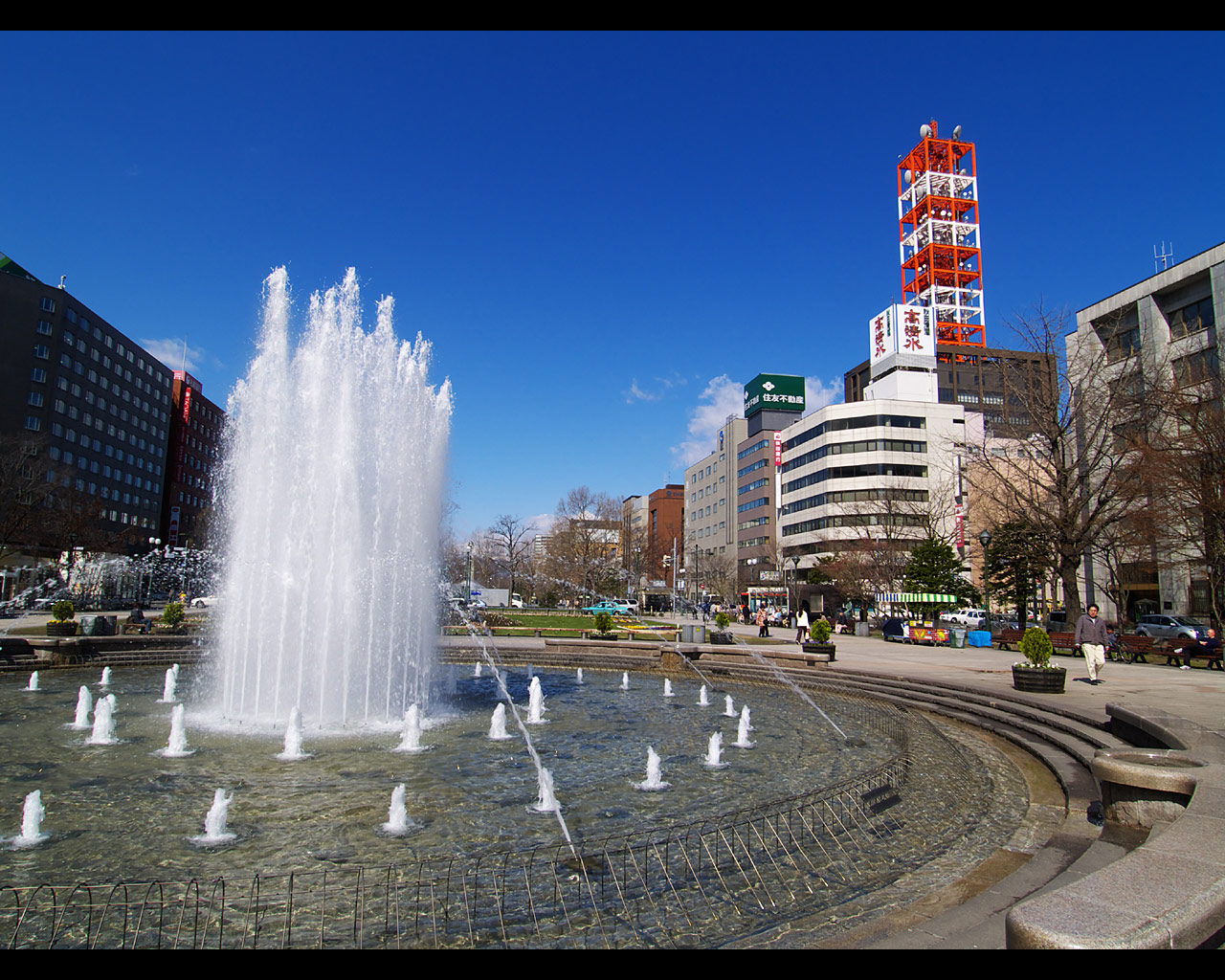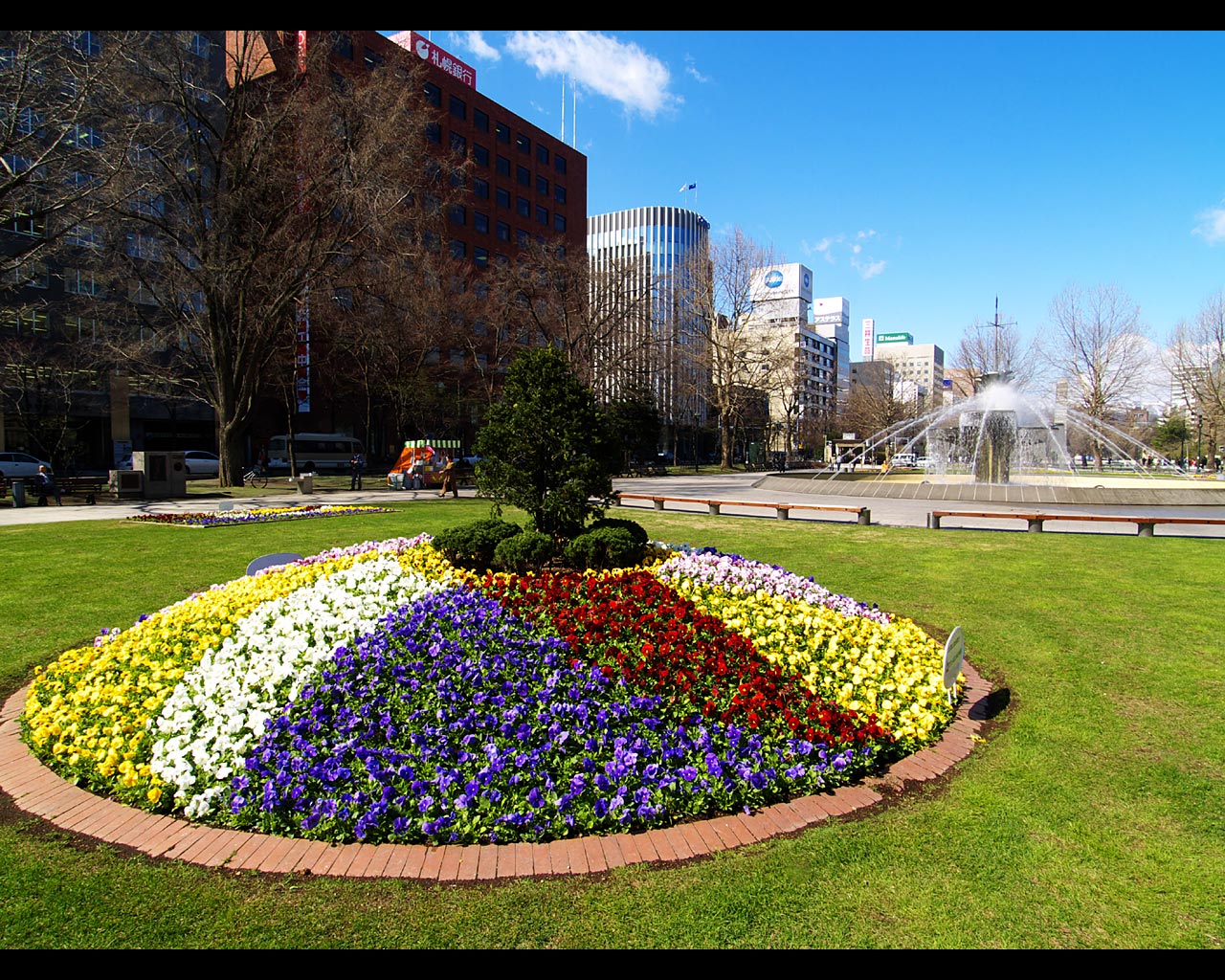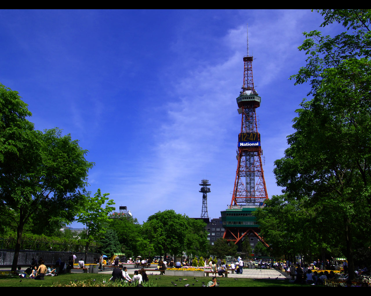 大通公園は,札幌都心中央部を横断する札幌の代名詞ともいえる公園です.都心部はこの公園を境に北と南に分けられ,北にビジネス地区,南に商業地区があります.この公園ではホワイトイルミネーションやさっぽろ雪まつりが開催され,イベントごとにも欠かせない公園となっています.また,花壇には四季折々の花々が,縁部には様々な木々が植えられ,市民の憩いの場として,特に平日の昼休みの休憩の場として活用されています.大通公園の名物として欠かせないのが露店で販売されている「とうきび」(とうもろこし)で,焦がしたしょうゆの匂いが公園に漂っています.この公園は,都市計画の上で札幌の模範となった名古屋の久屋大通を模倣したものだと言われています. |