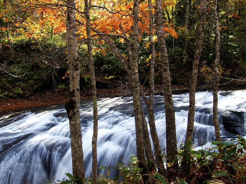 恵庭渓谷に3つある滝のひとつ,白扇の滝.なだらかな滝です.