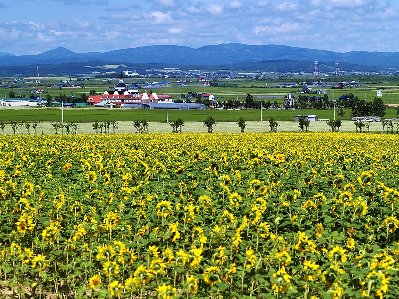 北竜町ひまわりの里のひまわりと北竜町道の駅です.