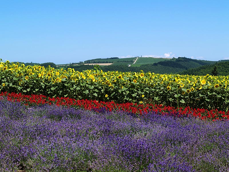 ひまわりとラベンダーと丘の競演です.