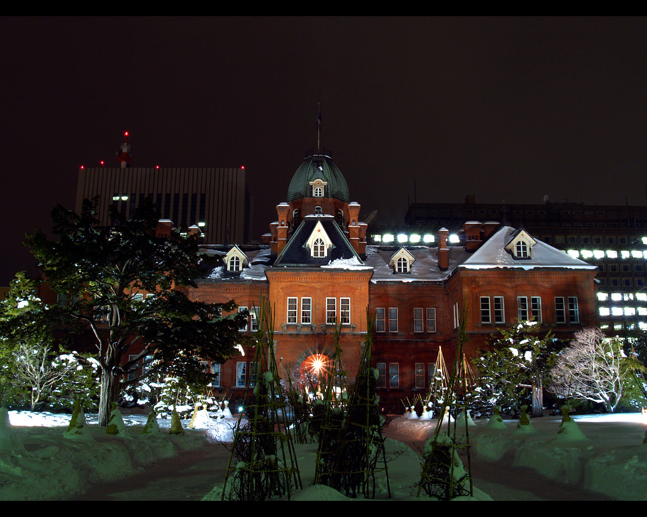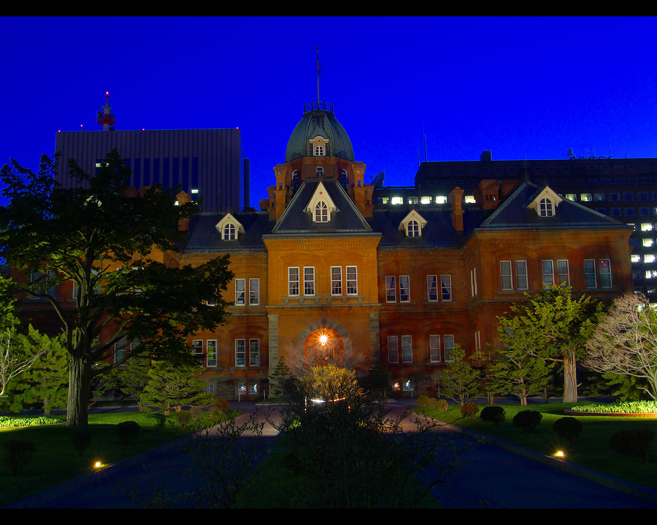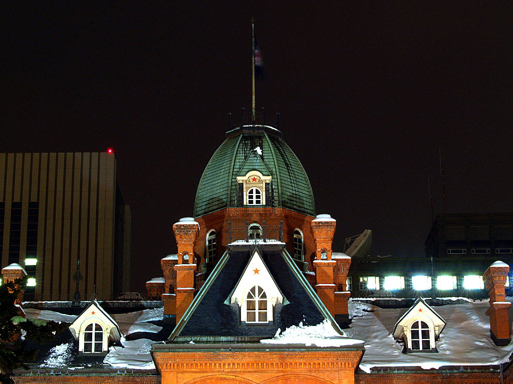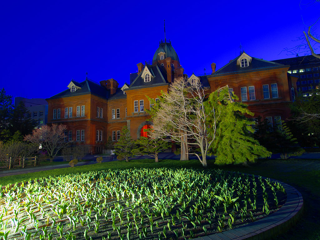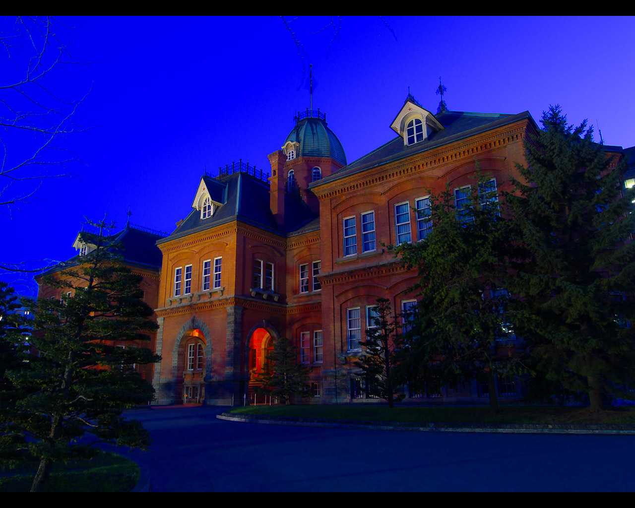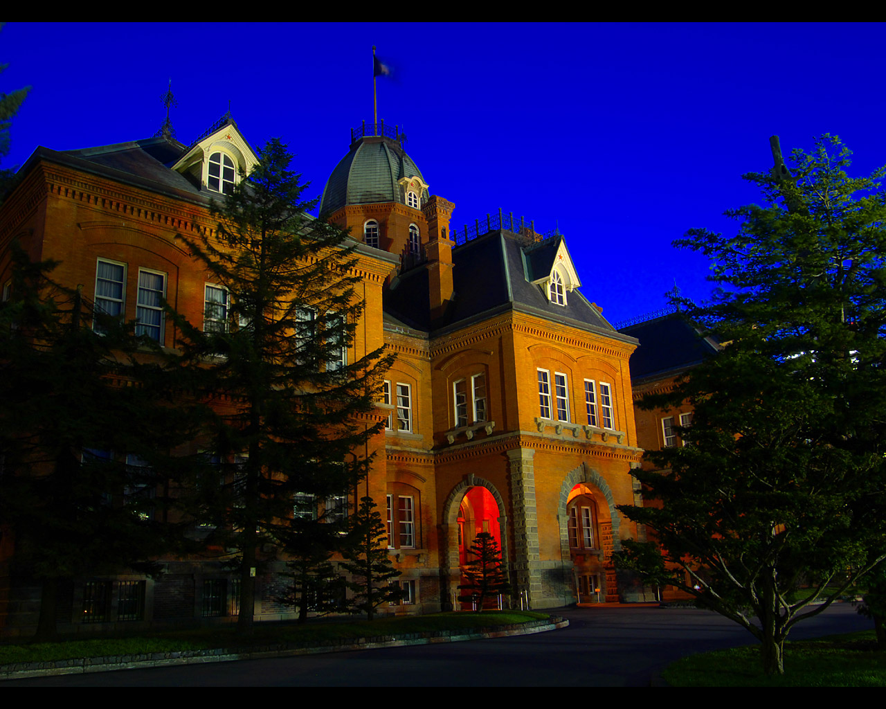 赤れんがの北海道庁は旧本庁舎で,現在は資料館や会議室として利用されています.実際の業務の大部分は裏の大きな建物で執り行われていて,赤れんが庁舎は観光名所となっています.夜景を撮るにはライトアップが大雑把なので(中央一点の光)、明暗差が大きくなってそれほど撮りやすい被写体とは言えないと思います.