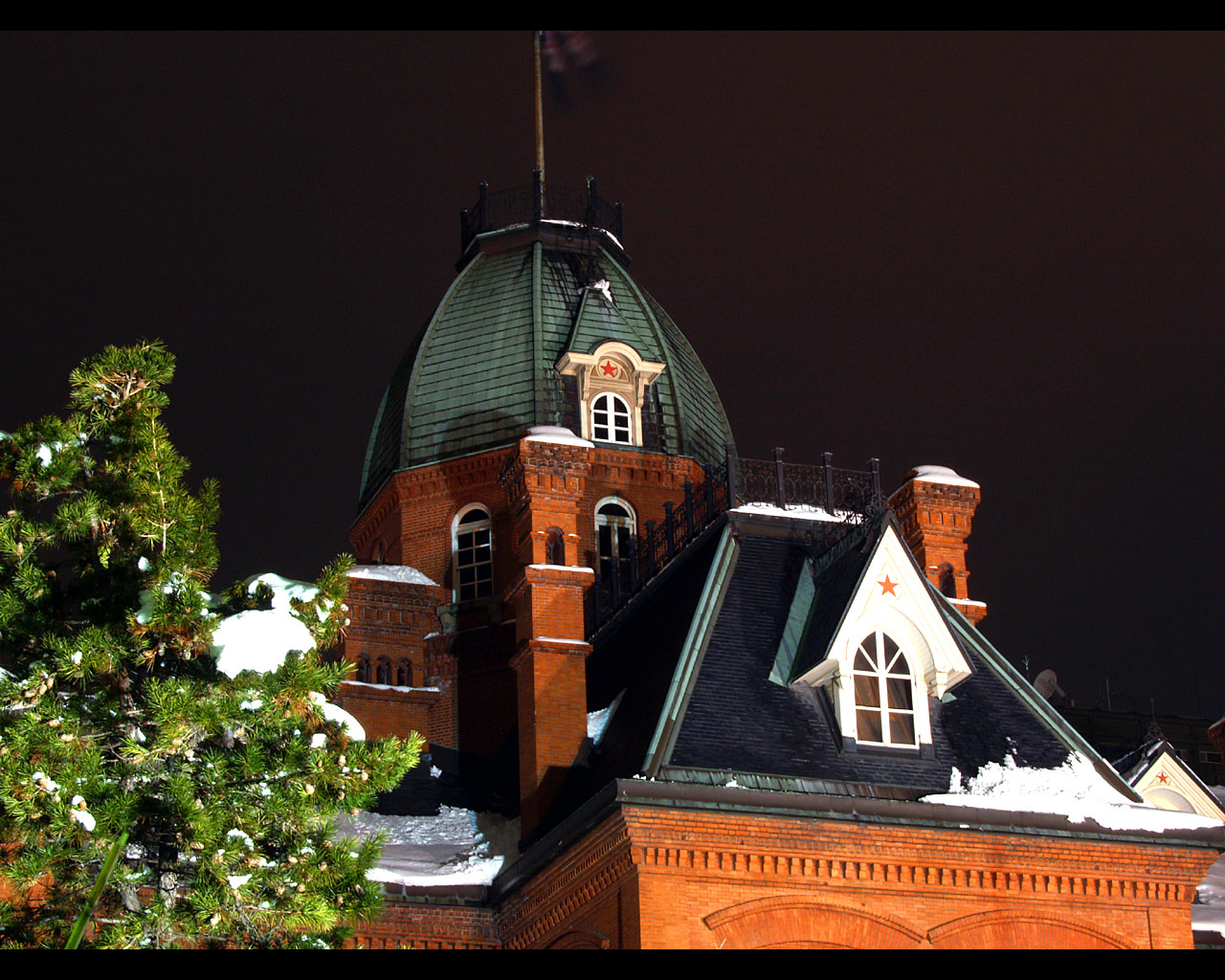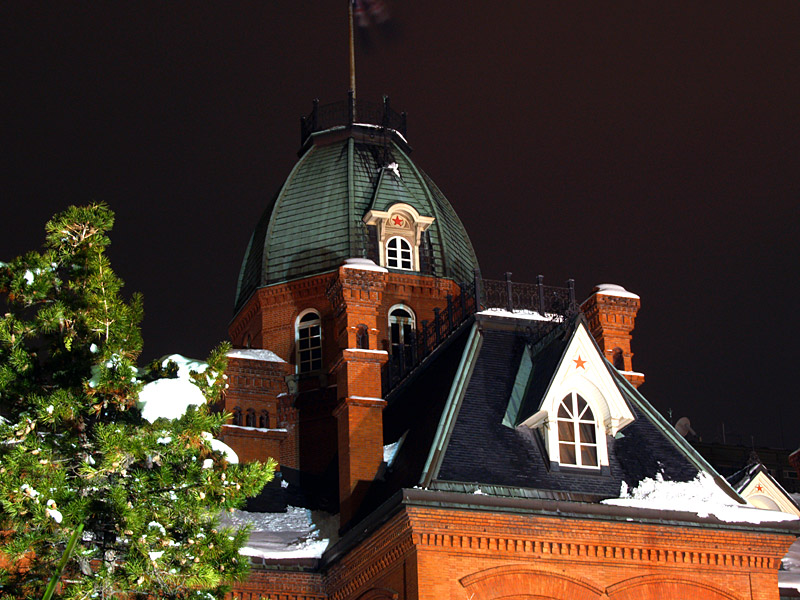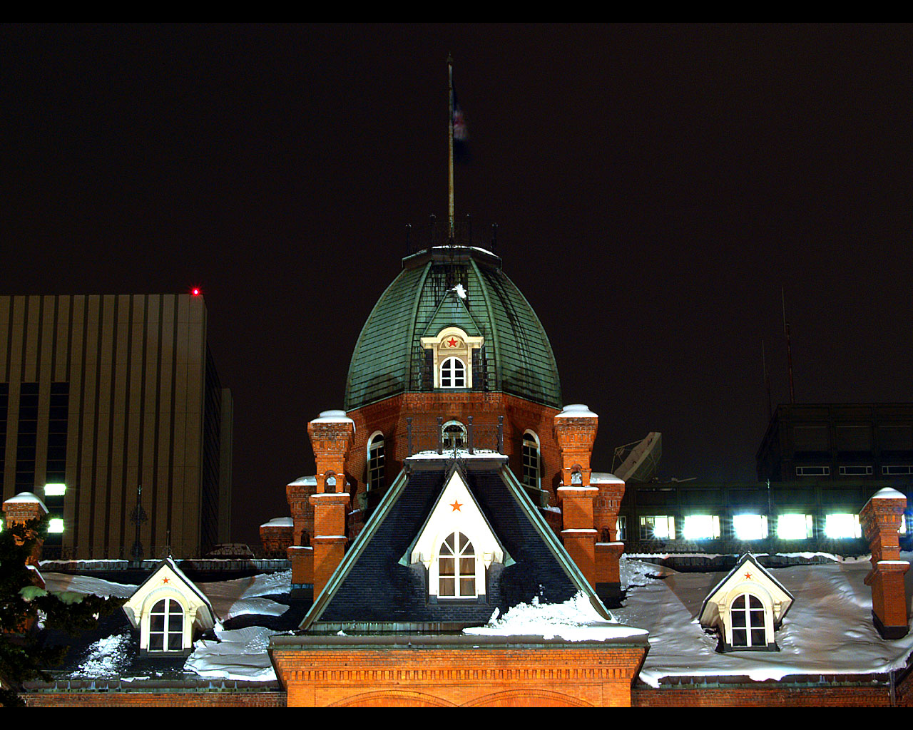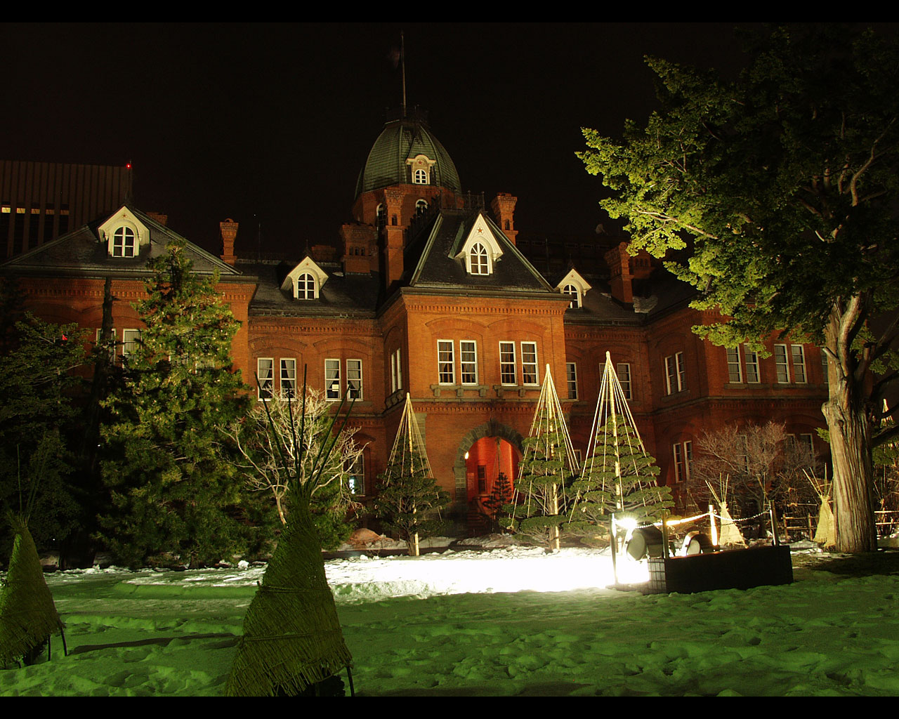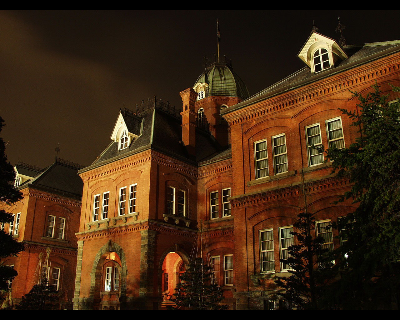赤れんがの北海道庁は旧本庁舎で,現在は資料館や会議室として利用されています.実際の業務の大部分は裏の大きな建物で執り行われていて,赤れんが庁舎は観光名所となっています.夜景を撮るにはライトアップが大雑把なので(中央一点の光)、明暗差が大きくなってそれほど撮りやすい被写体とは言えないと思います.