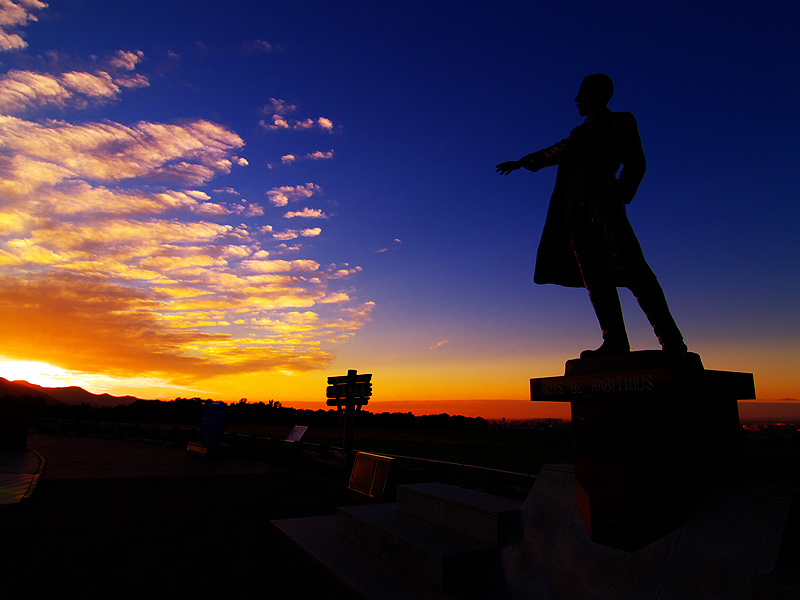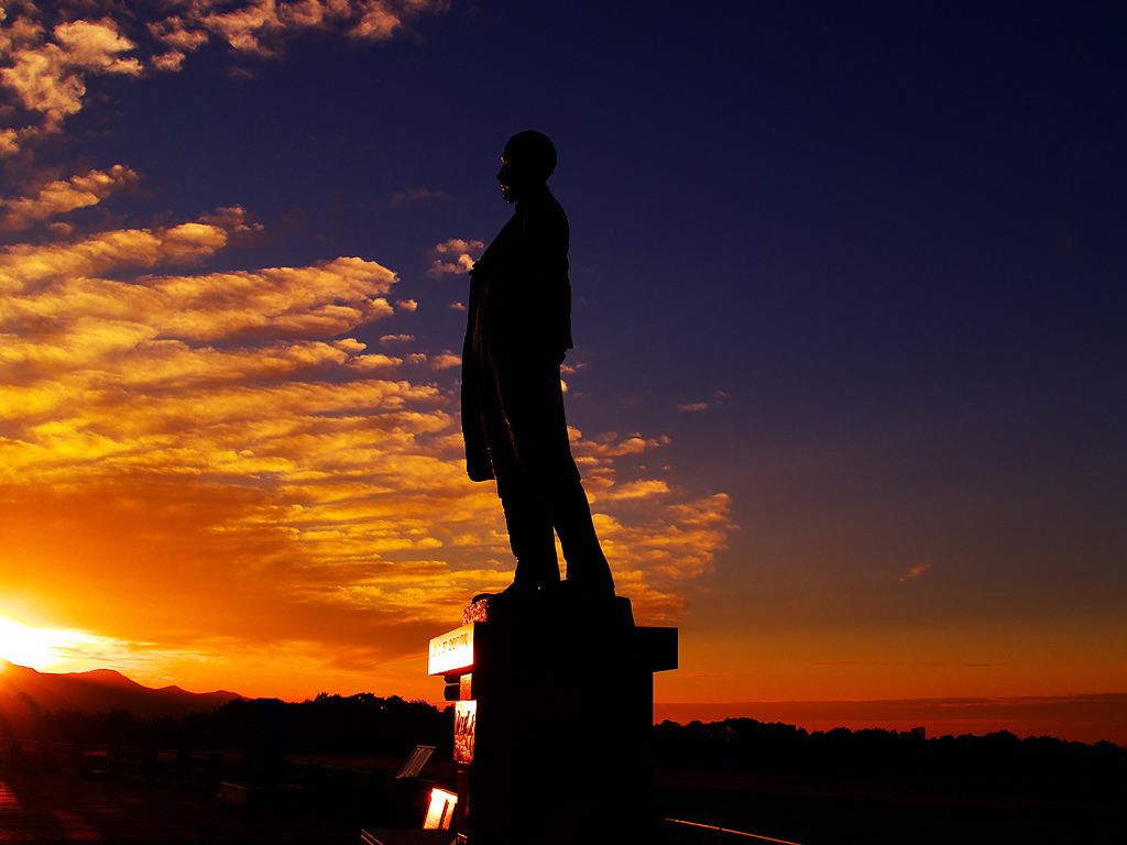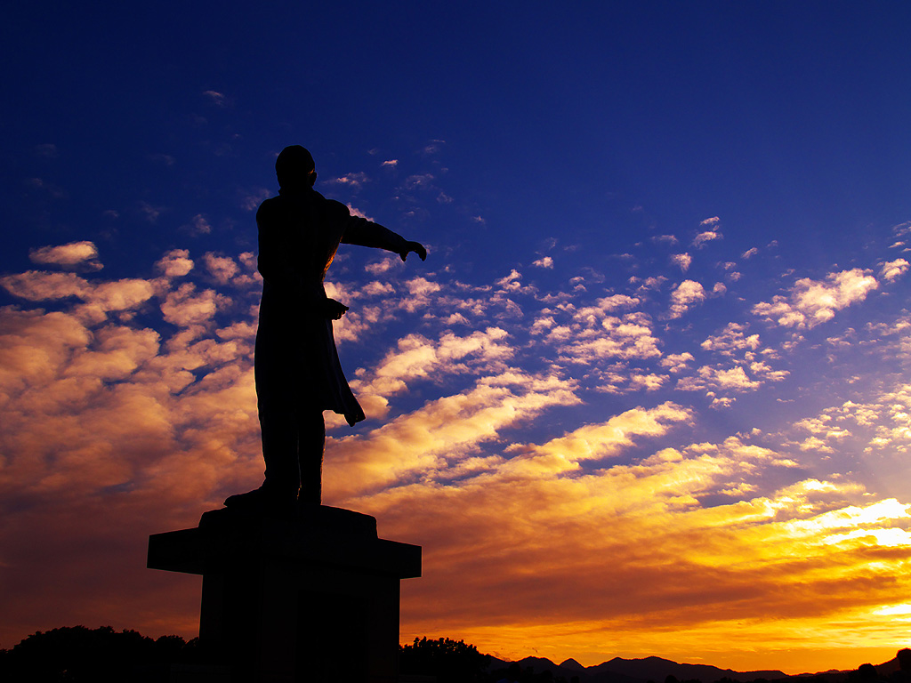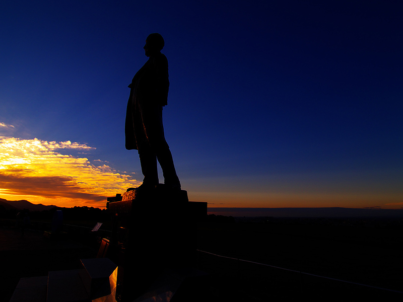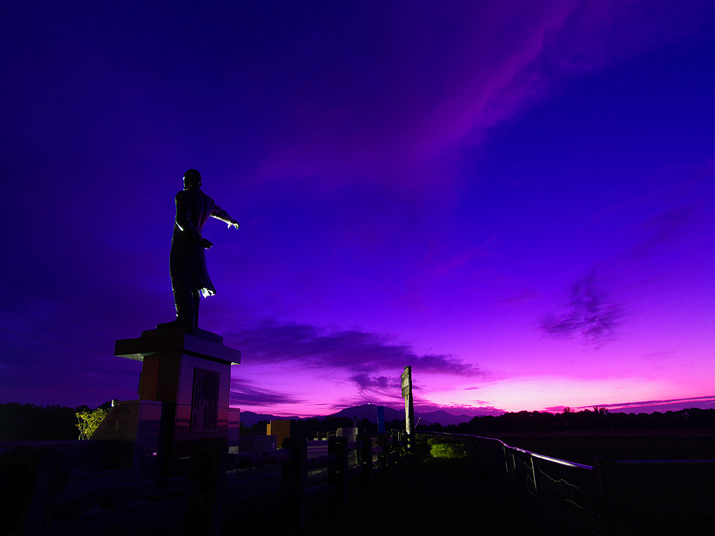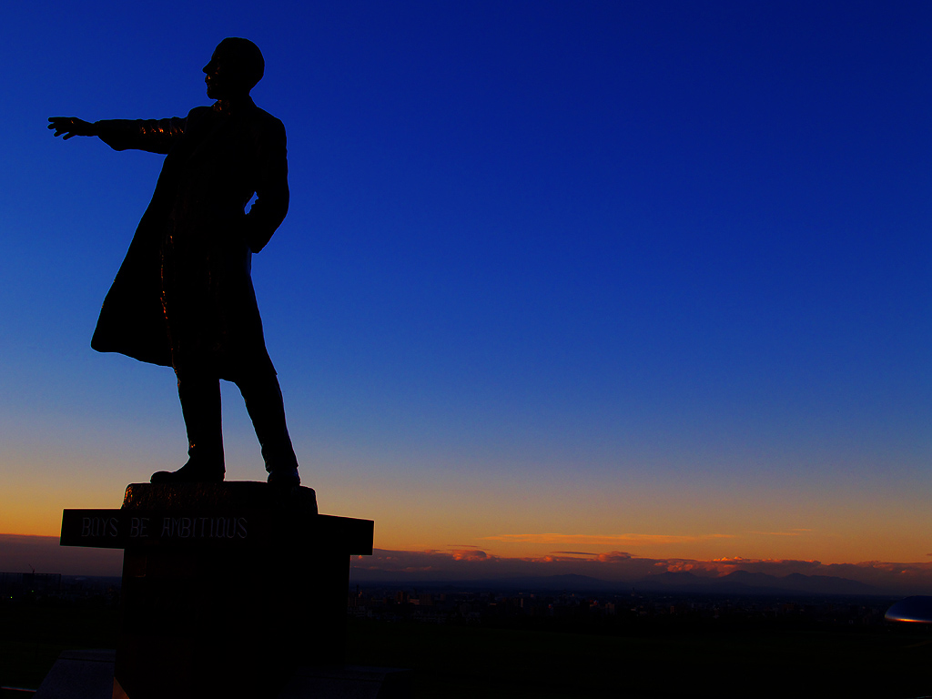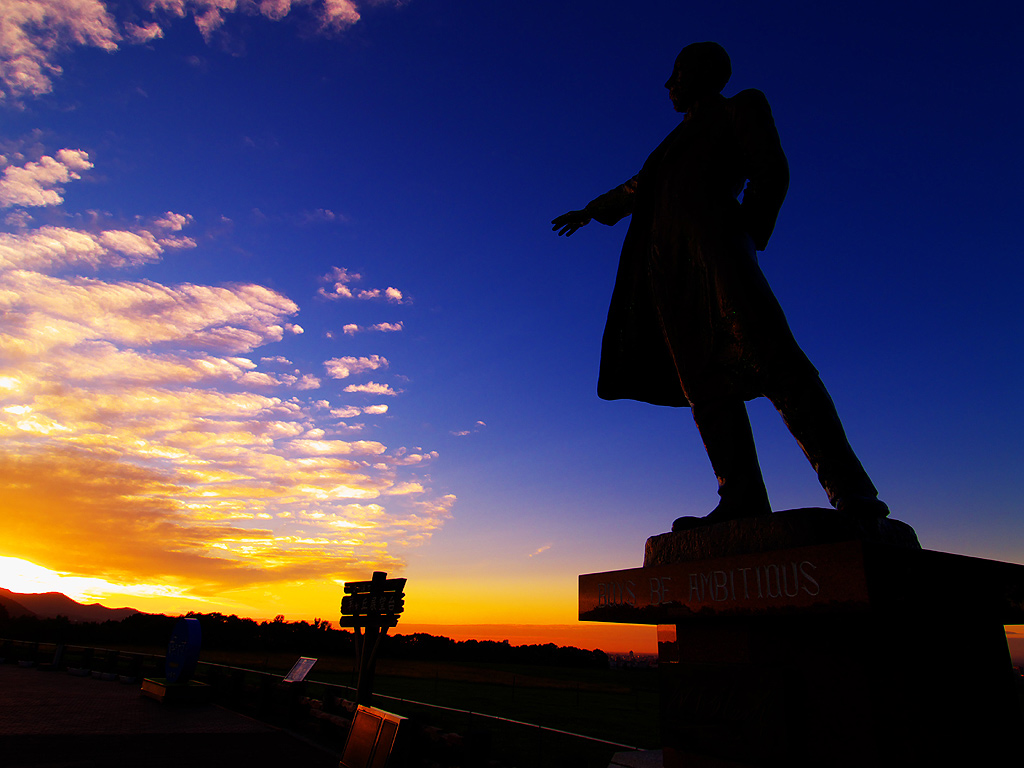 クラーク像と夕日