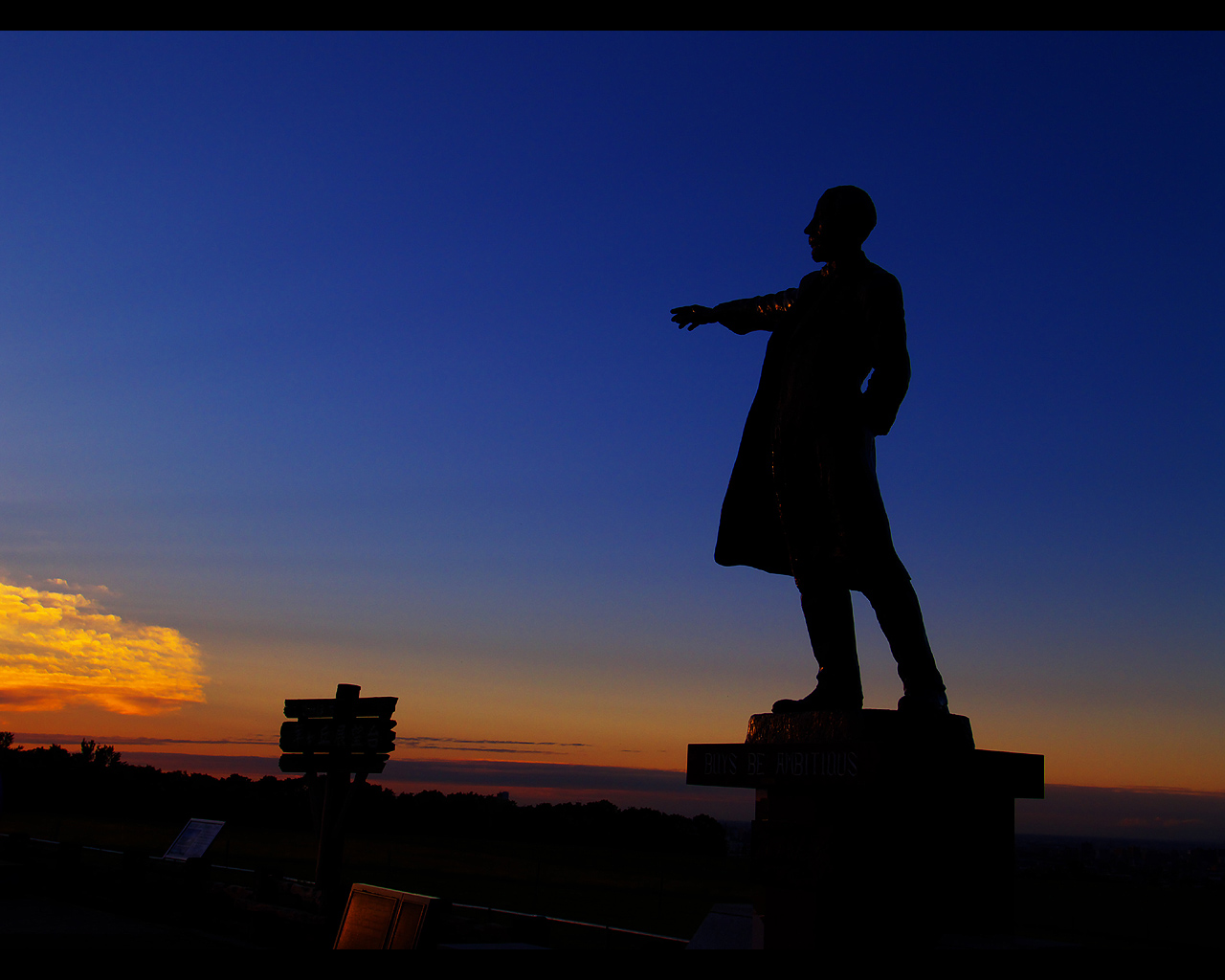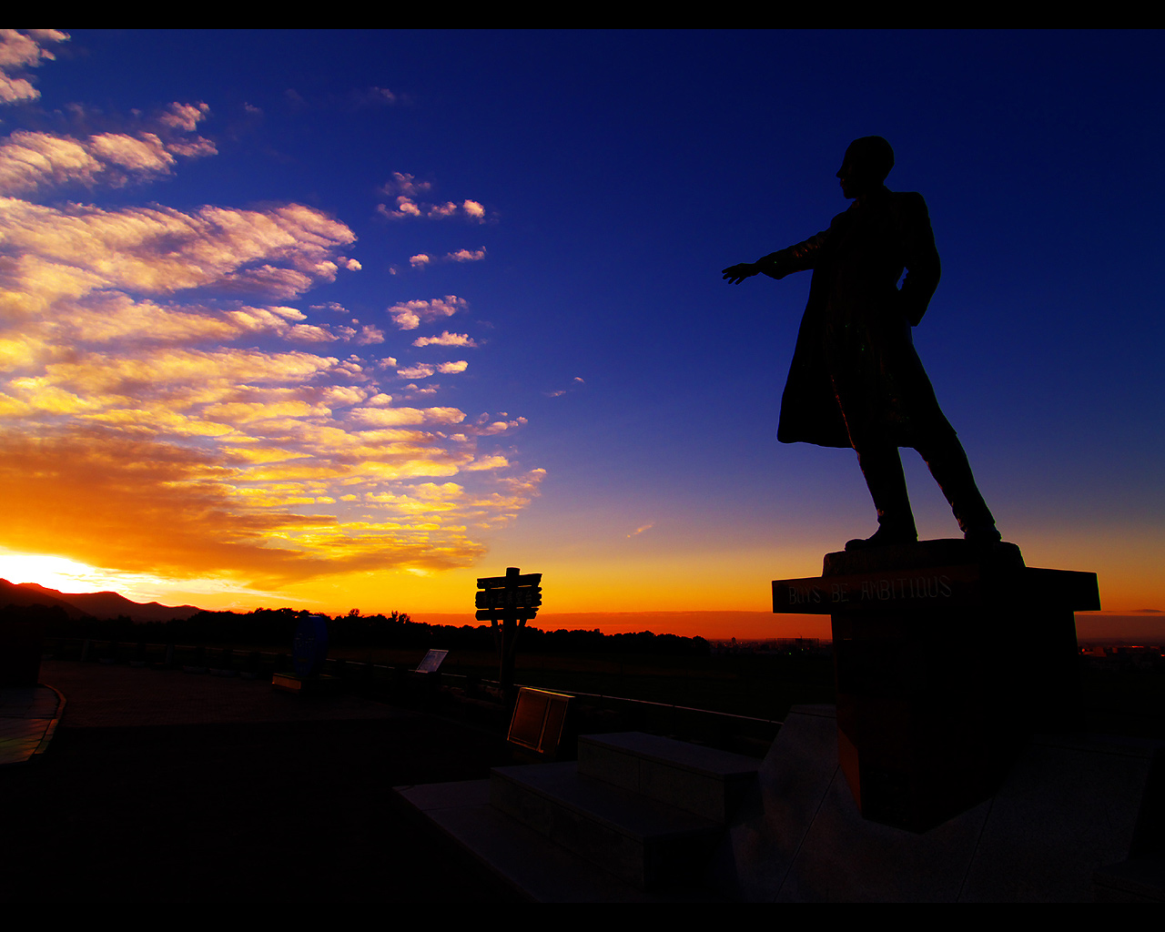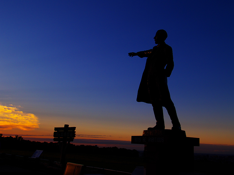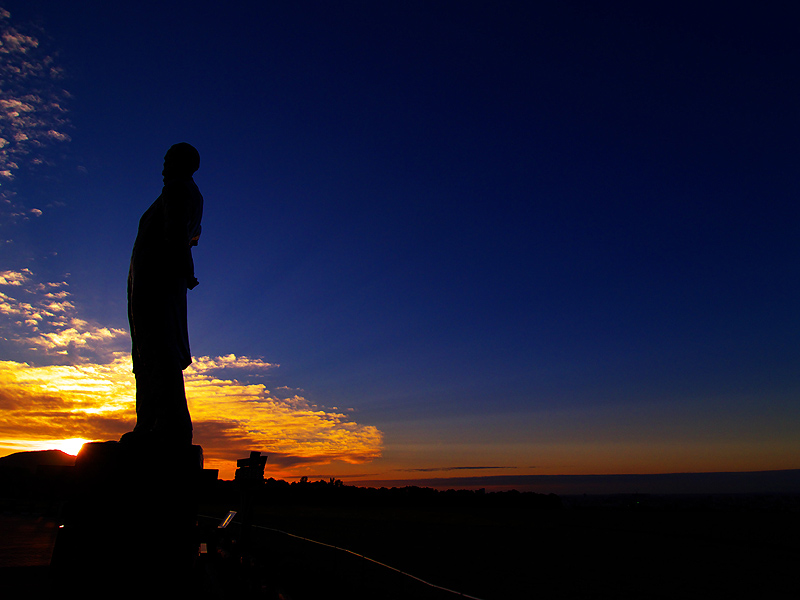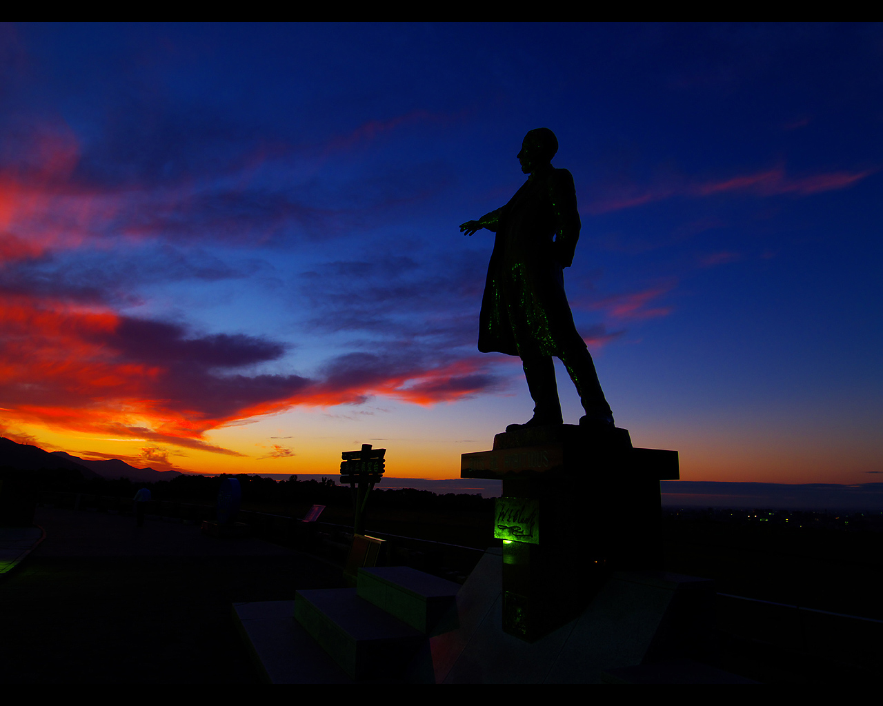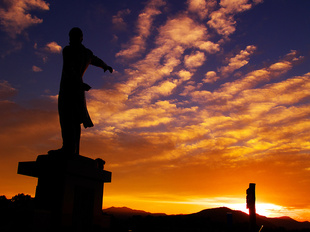 クラーク像と夕日
