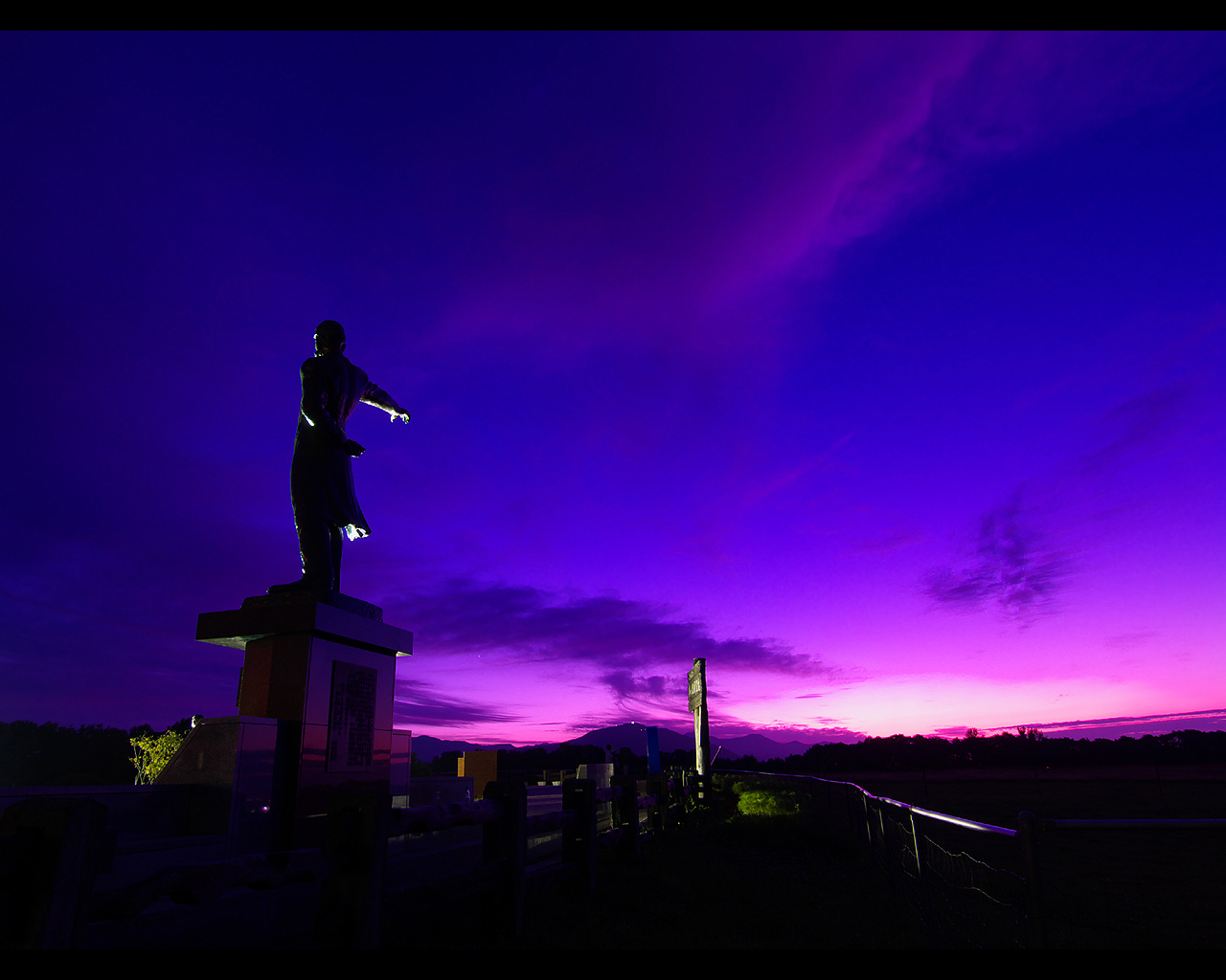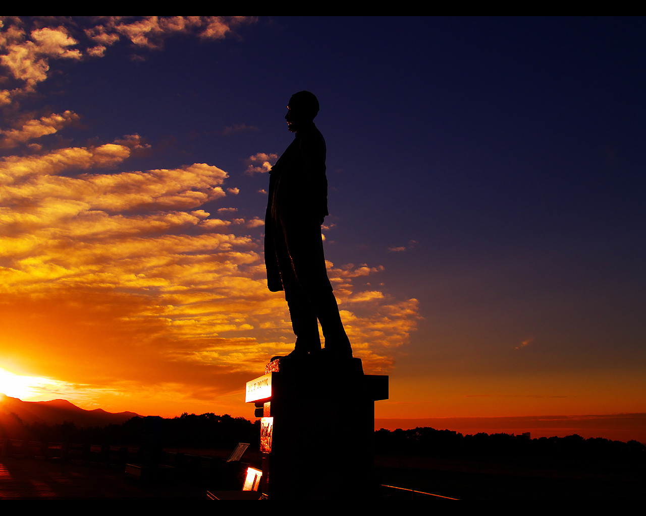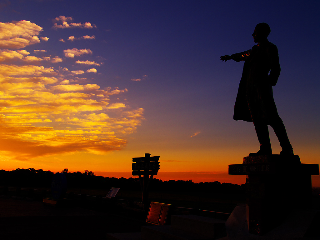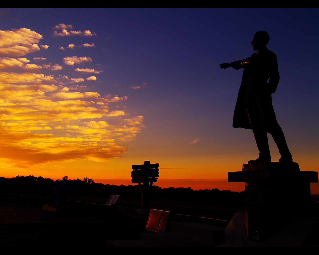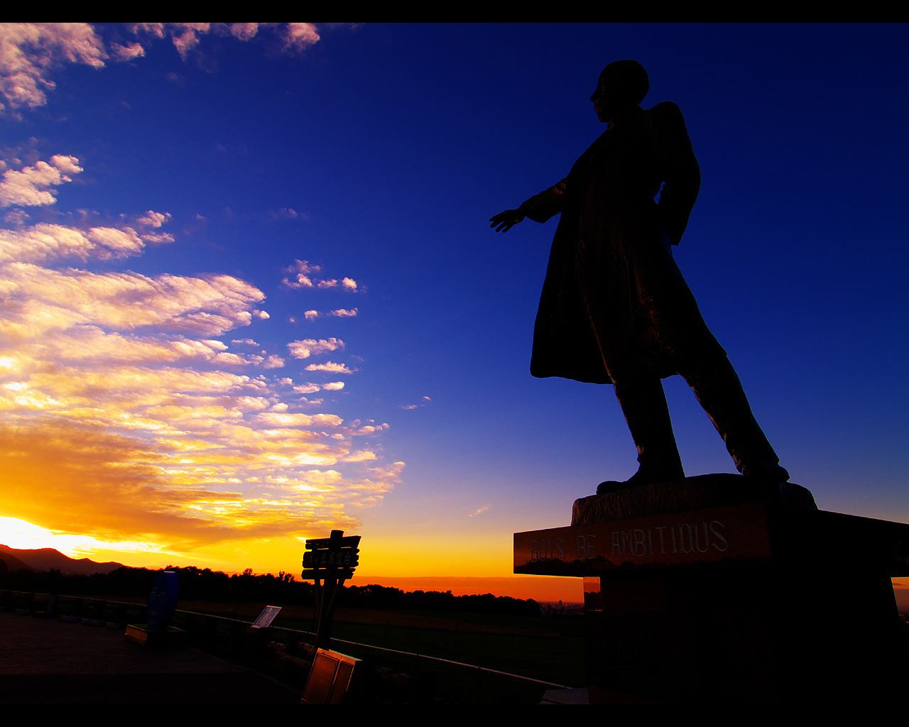 クラーク像と夕日