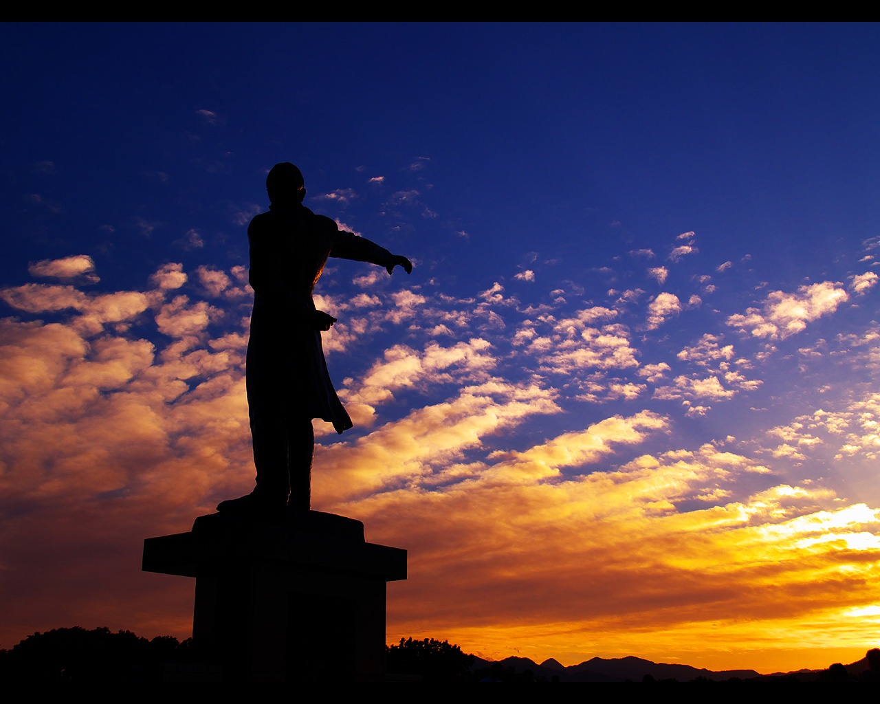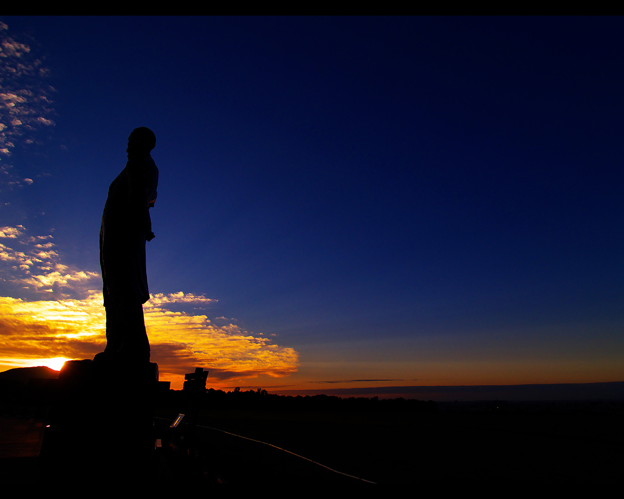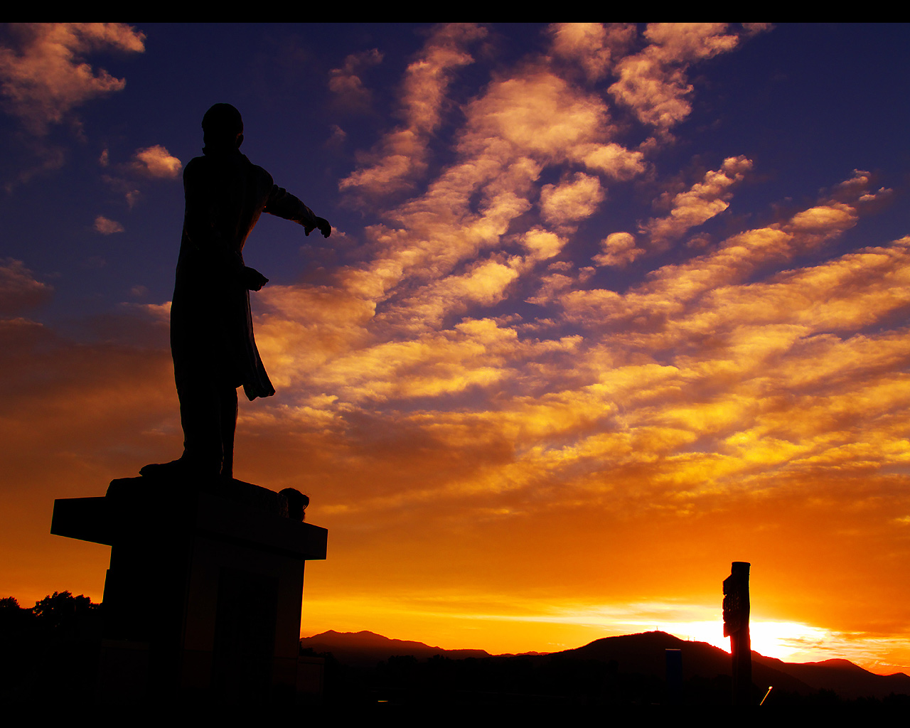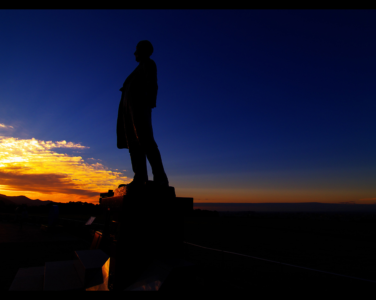 クラーク像と夕日