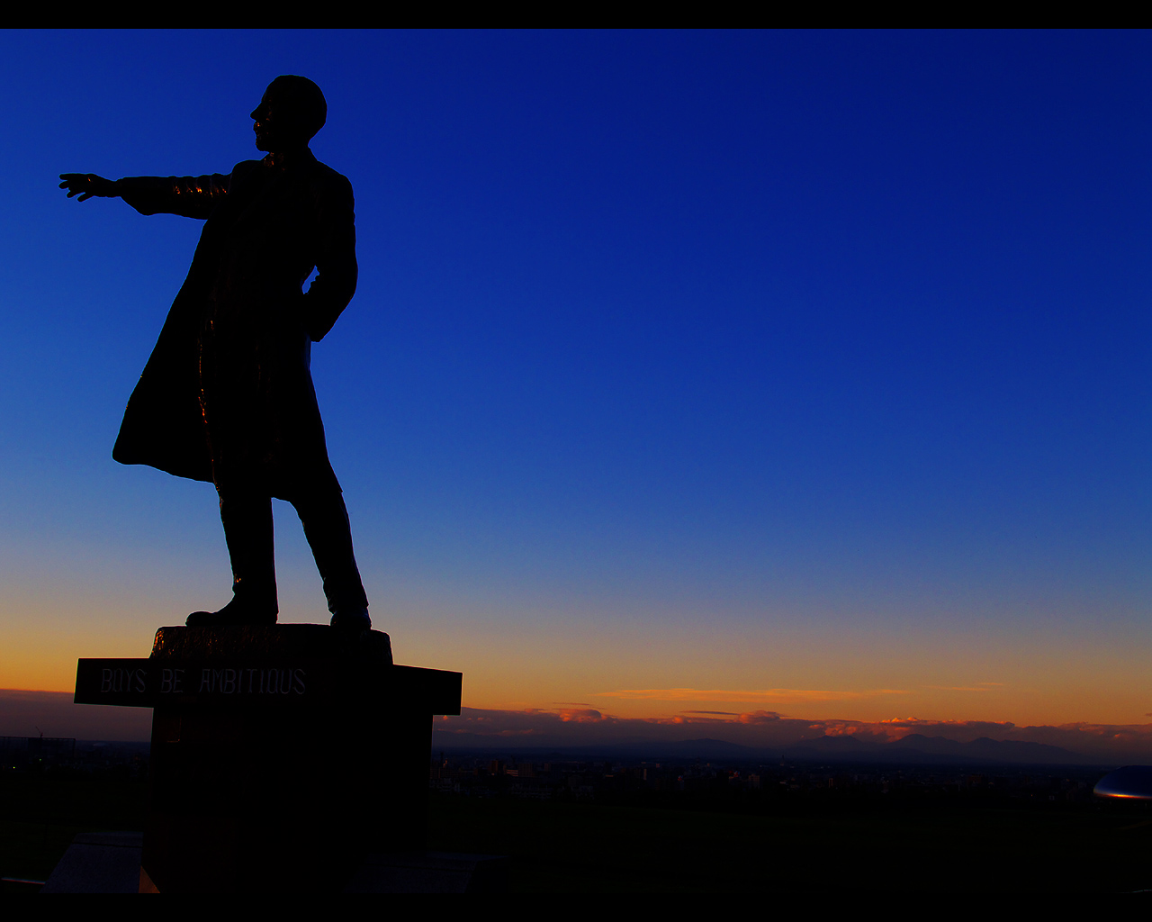 クラーク像と札幌遠景