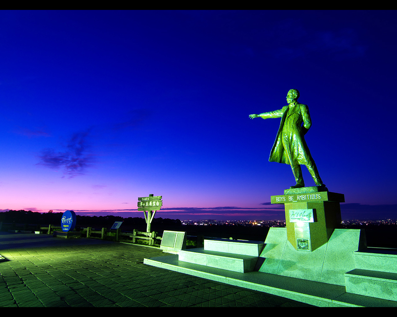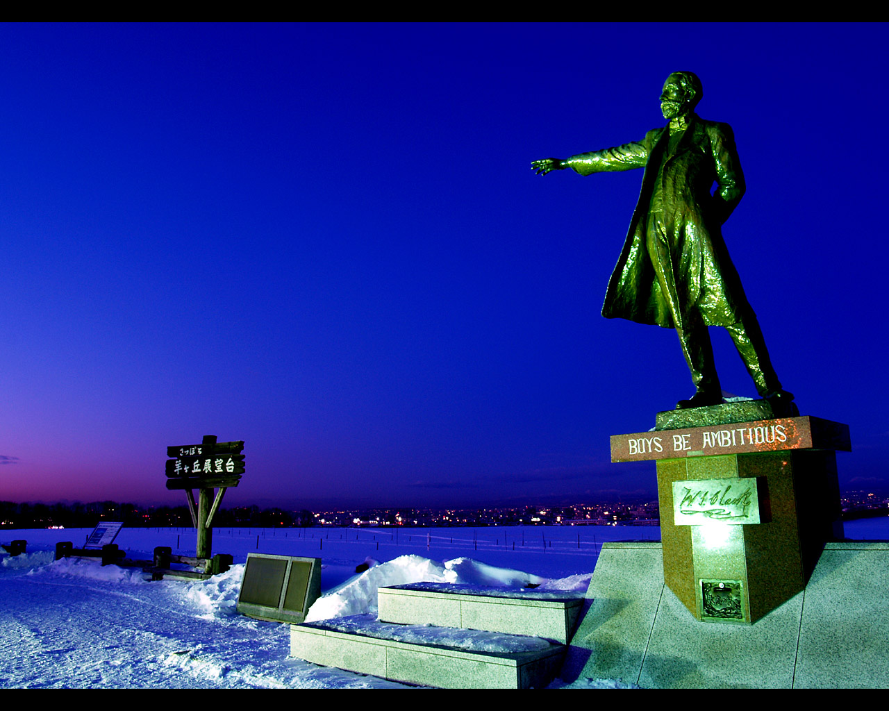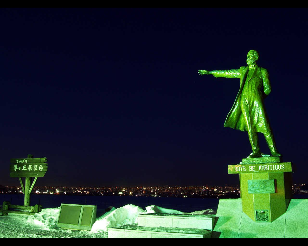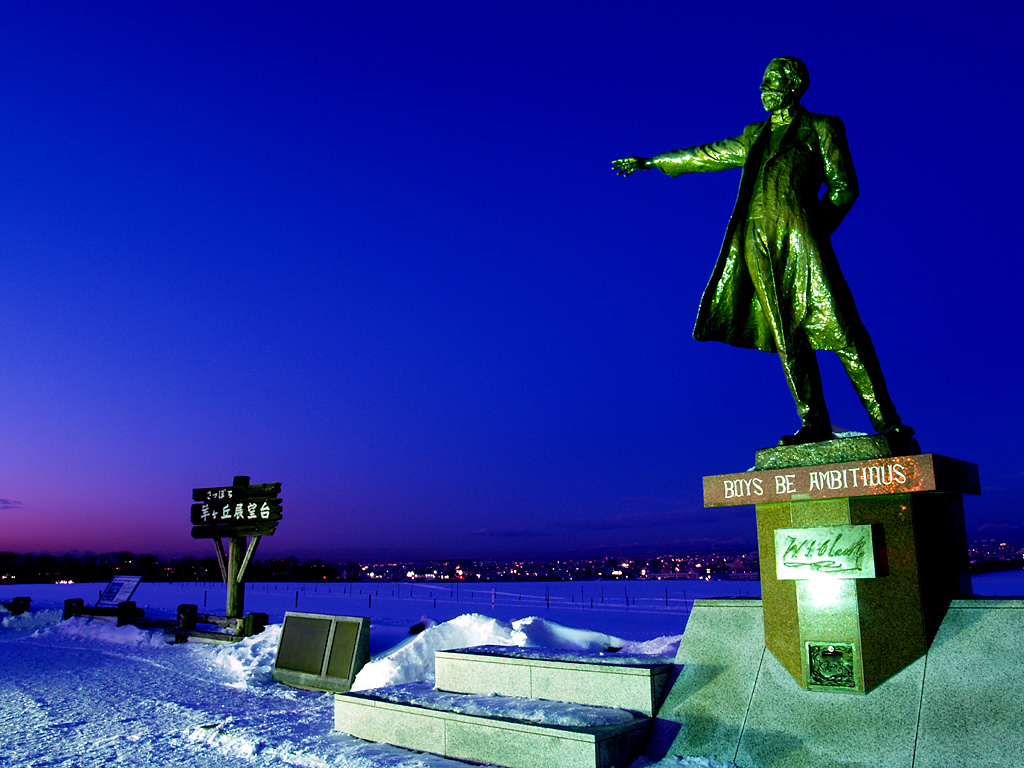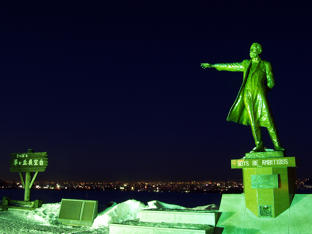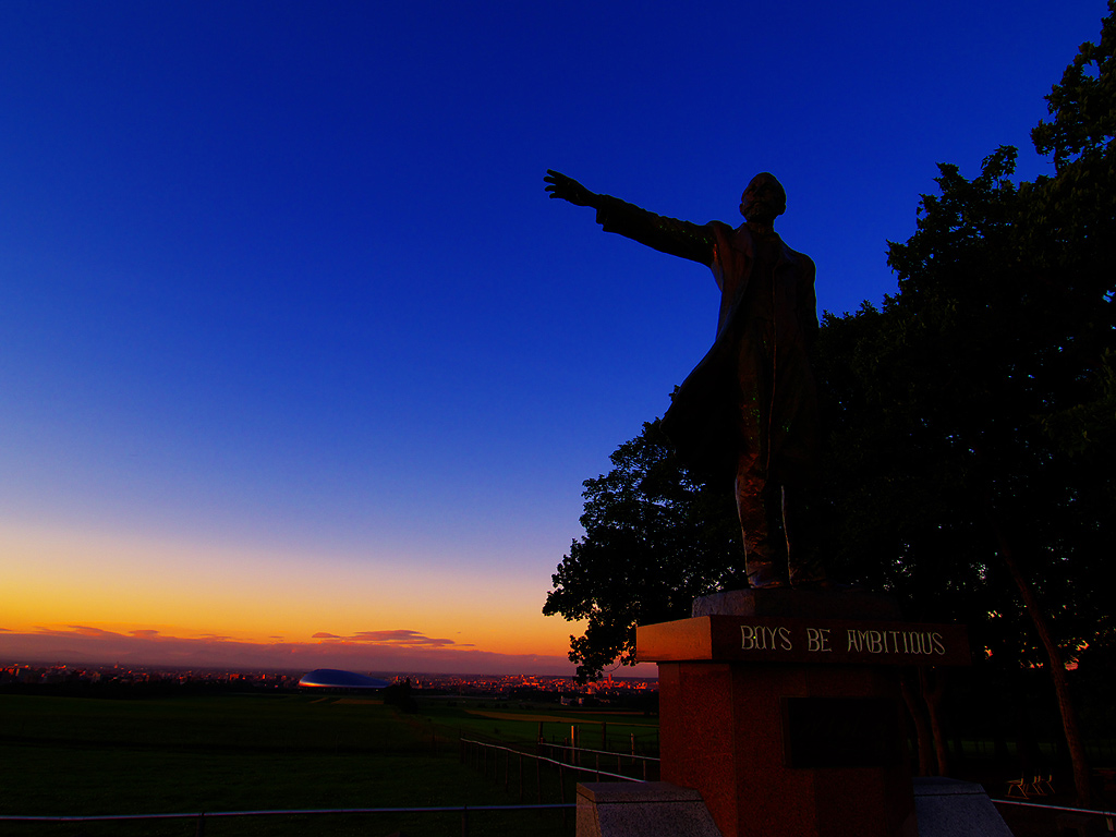 クラーク像と札幌夜景
