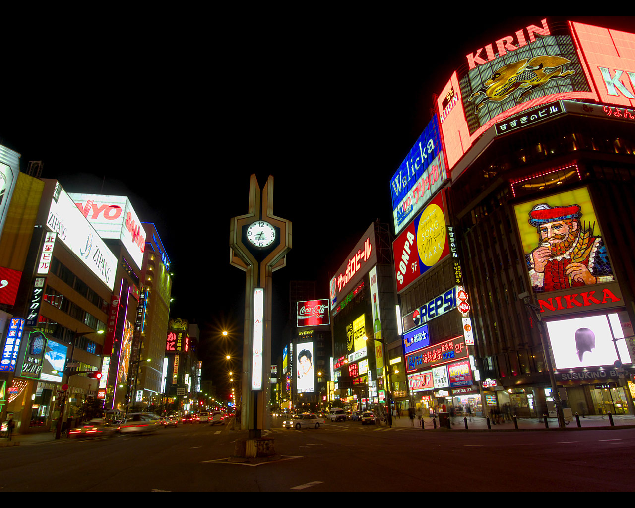 すすきの交差点の夜景の壁紙写真(1280×1024)