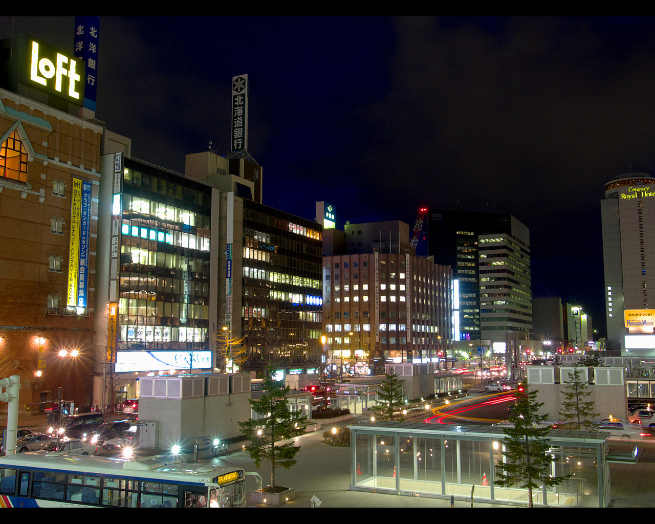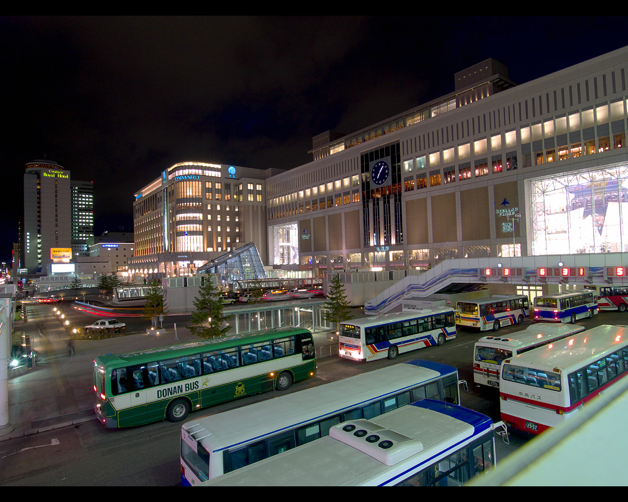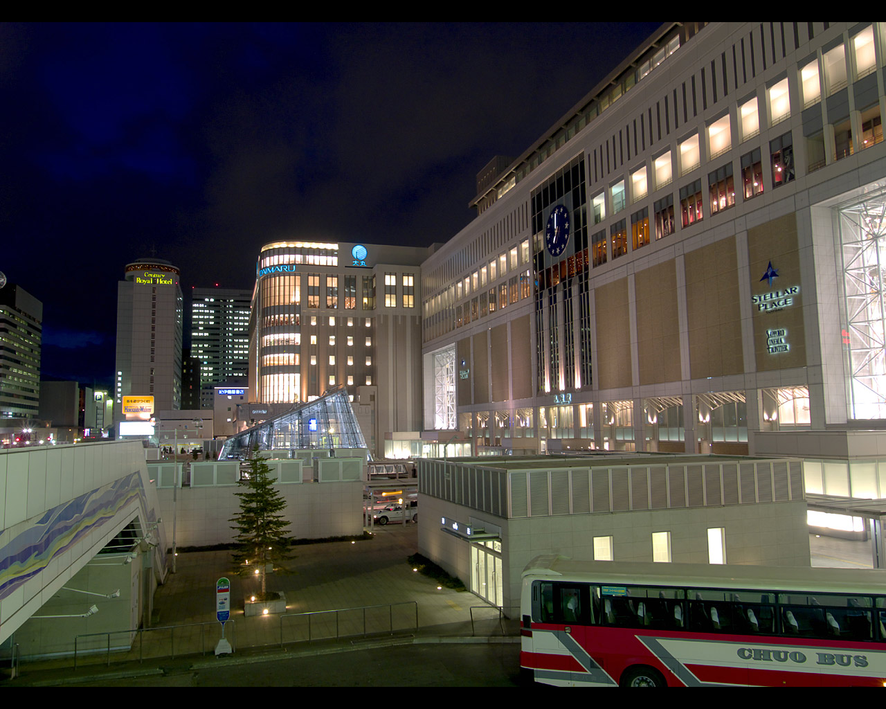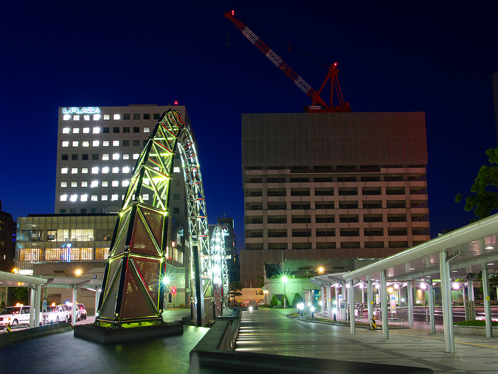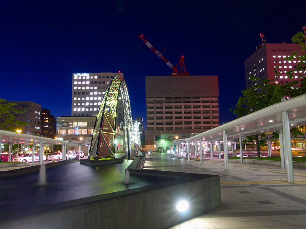 札幌駅の駅ビルとして商業施設「ステラプレイス」,高層ビル「JRタワー」,デパート「大丸」ができました.これらの施設は札幌都心の集客重心を大きく動かし,札幌駅周辺は大通公園周辺やすすきの周辺に代わって札幌の中心的な存在となりました.ただ,写真を撮る中心となる南口広場は地下を通る人が多いためか夜になるとそれほど人が歩いておらず,比較的三脚を持って写真を撮りやすい場所になっています.