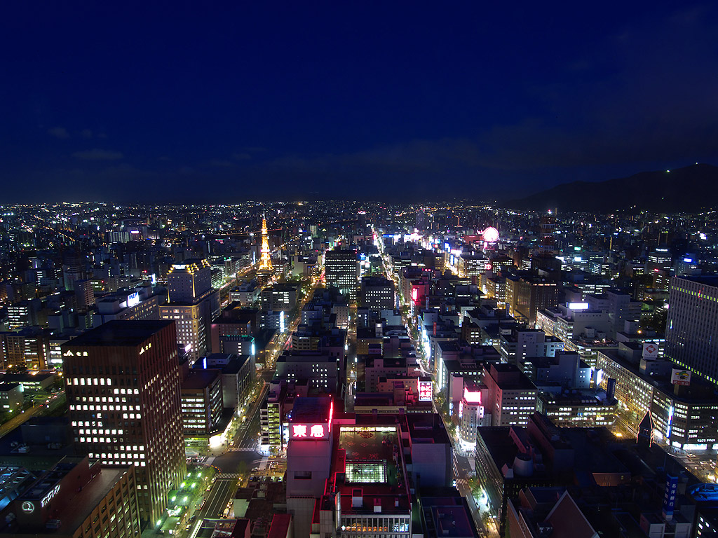 もう少し時間が経った後の大通・すすきの方面.札幌には高いビルがないので遠くまでよく見えます.
