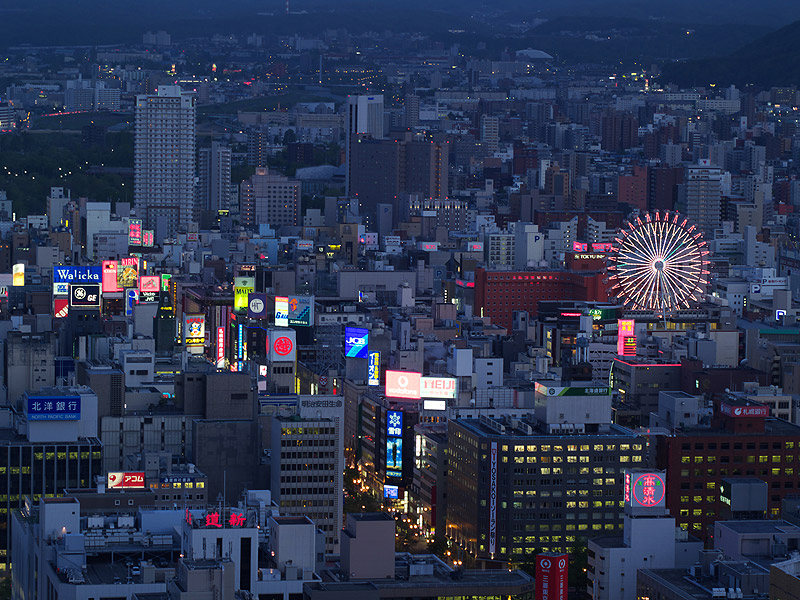 札幌の新名所,ノルベサの観覧車と駅前通りの光です.