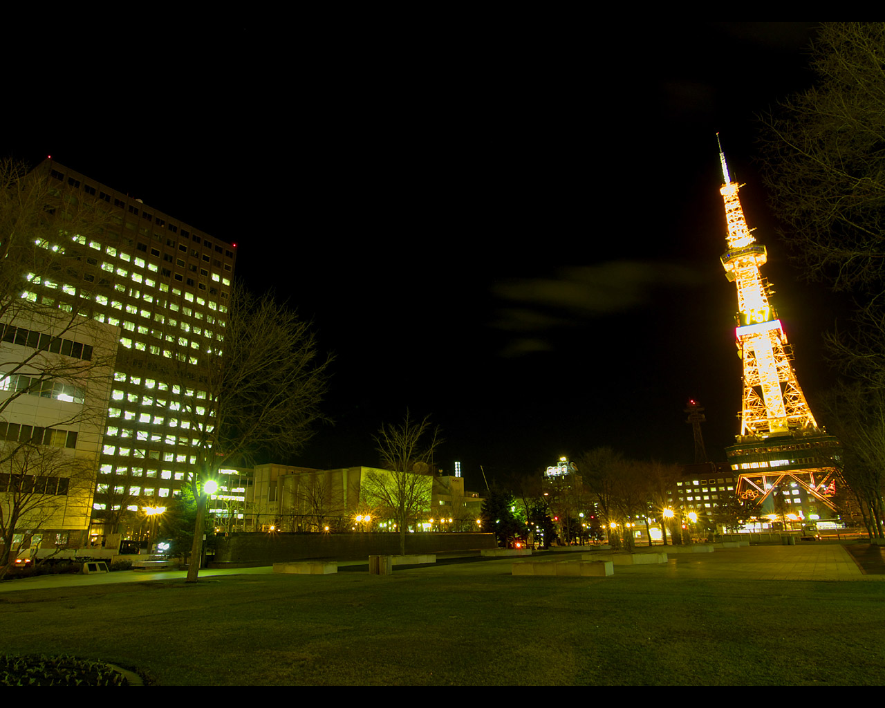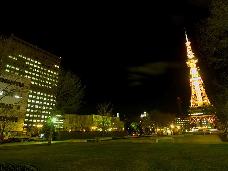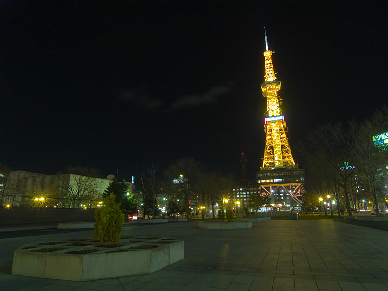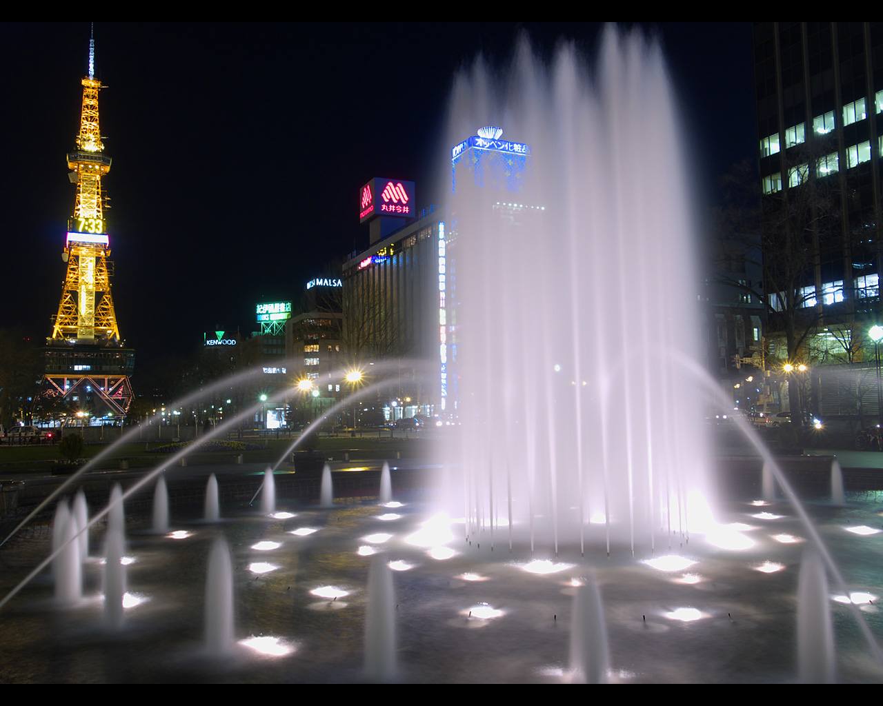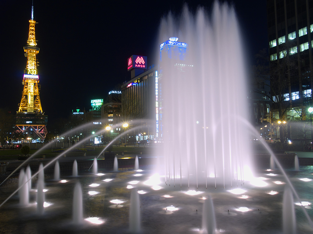 さっぽろテレビ塔の展望室からは札幌駅方面を含めた壮大な夜景を眺めることができます.職員の方々が写真を撮るのに非常に協力的で好感が持てました.また,テレビ塔がある大通公園の噴水はライトアップされています.